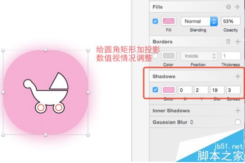 10、给圆角矩形设置一个投影,范围稍大,颜色浅一些,得出最终图标样式。