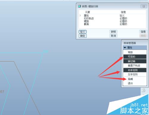 2、按下图提示选择可变的-穿过轴-右手定则,确定后选择基准平面然后再确定进入到草图当中;