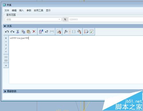 6、添加表达式,工具-关系式,然后输入sd3=8+trajpar*80;