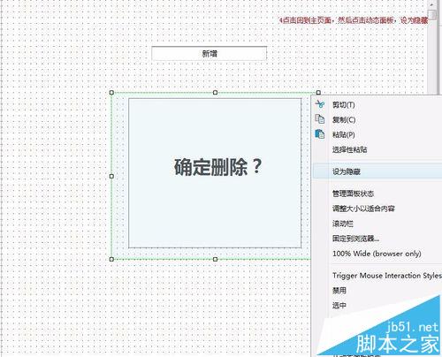 4、点击回到主页面,点击动态面板,设为隐藏