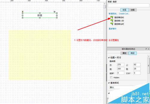 5、设置为隐藏以后,点击鼠标点击时,去设置属性
