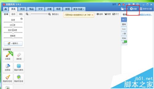 1、首先,我们打开美图秀秀软件,然后在美图秀秀软件中点击选择“新建”按钮,打开新建功能菜单选项。