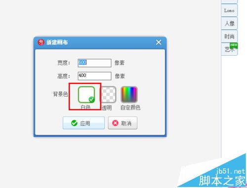 2、接下来,在弹出的页面中我们点击选择“新建画布”,然后按照默认的选项设置选择使用“白色画布”,然后点击保存该白色画布图片。