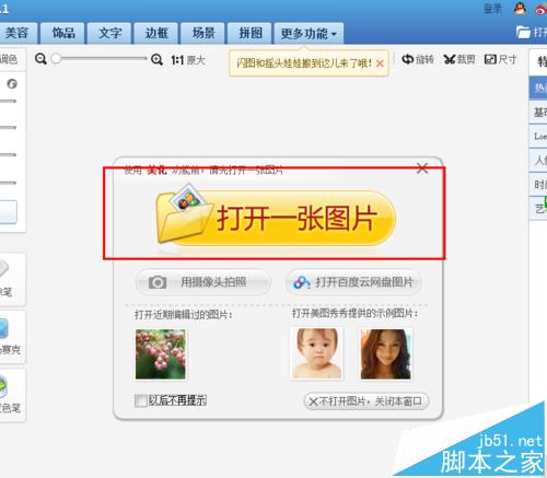 3、完成上述的准备步骤之后,我们开始进入正式的图片背景替换操作流程了,首先,还是运行美图秀秀软件,然后选择使用“美图”功能,打开我们要进行处理的图片。