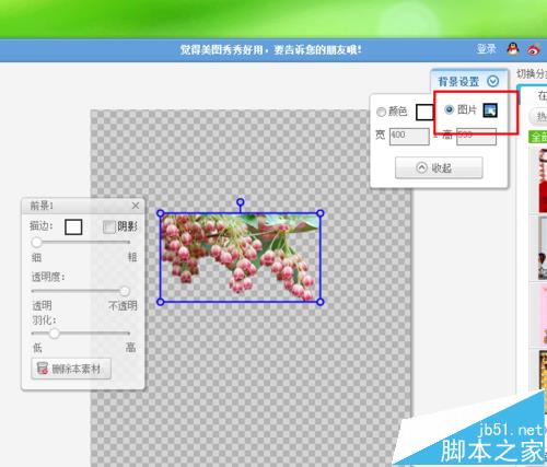 7、很明显,从图片中的操作步骤来看,我们可以在软件的右上角看到一个“背景设置”的功能,然后其中有一个“图片”的选项。