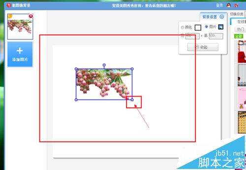 9、接下来,需要我们在展示的图片中,调整我们抠下来的图片的大小,以适应我们白色背景的图片,这个大小是根据我们的白色画布大小自行进行调节设置的,大家可以自定义调节大小,以符合我们自己的审美观。拖动图片中所示的工具,然后开始操作吧。