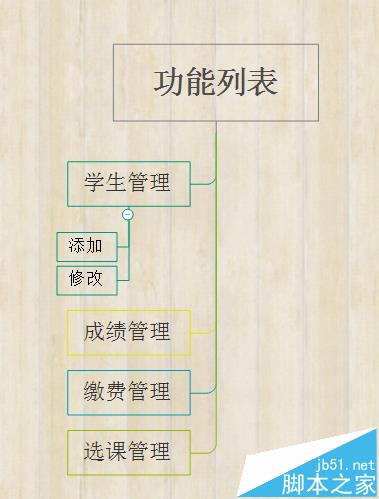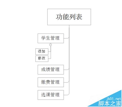 XMind软件中有类树形结构图,可以利用它设计系统的功能结构图。下面利用树状图(向左)制作功能结构图,具体操作如下: