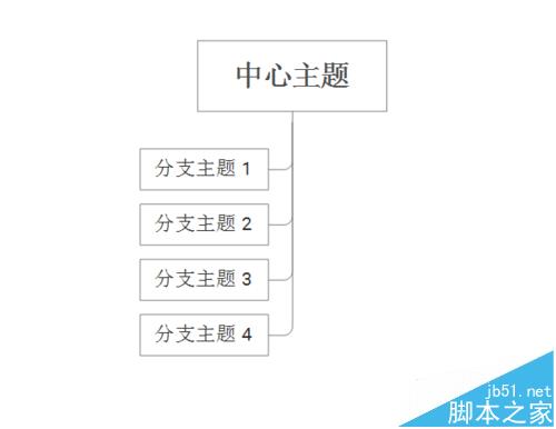 4、在中心主题后插入四个主题,描述分别为分支主题1、2、3和4,如下图所示: