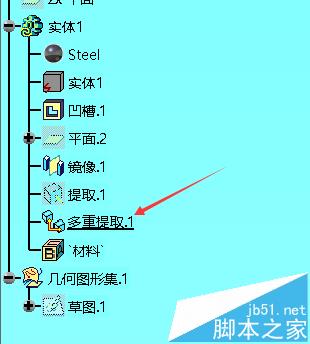 2、多重提取完成后,该零件的结构树上会出现一个多重提取,右键复制即可