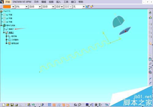 4、点击进入草图模式(注意此时草图面需要和曲线1是平行的),选中曲线1,命令栏中点击投影3D元素,然后此时曲线1就被投影到草图中,可以自由编辑了。