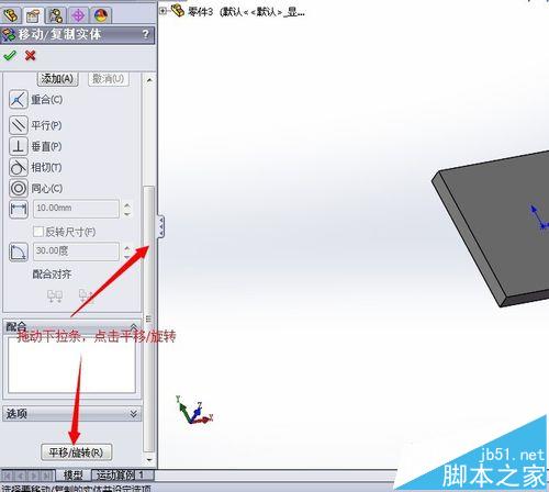 4、接下来,拖动下拉条,选中“平移/旋转”选项。