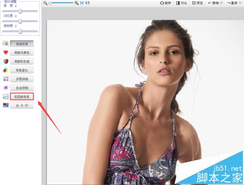 6、点击抠图换背景选项,进入抠图操作模式,如图所示: