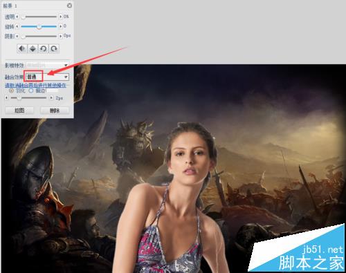 14、在这个界面内找到融合模式选项,将融合模式调节为普通模式,如图所示: