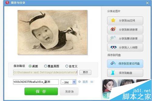 10、我们选好保存路径后,点击“保存”,弹出“保存成功”的页面,一张古典素描图片就制作完成了,有兴趣的不防来试试吧!