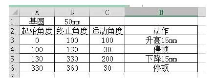 2、点击凸轮图标后会弹出下面的选项卡,按照数据填写:
