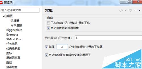 4、相信大家已经看到上面截图中有个黑匣子功能,黑匣子功能也是非常实用的。开启之后,XMind会在用户的电脑中保存当前编辑的文件的备份版本,一旦出现意外,譬如文件格式损坏,不小心误删除了文件等恶劣情况,用户即可从黑匣子中恢复到某个备份。同时,出于保护用户的文件安全,黑匣子功能是默认开启的(编辑—首选项)。当然,用户可以删除之前保存的某个或者所有备份,甚至不开启黑匣子。
