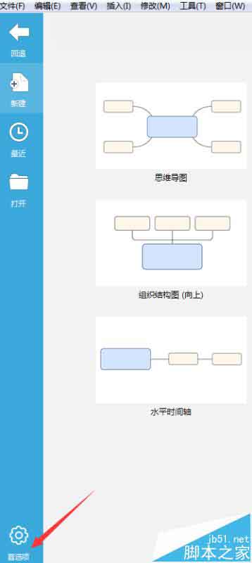 2、XMind 7自动保存功能位于首选项中,即打开XMind 7界面的左下角,也就是说在使用:XMind 7绘制思维导图之前就可以进行设置,以防意外发生导致导图来不及保存: