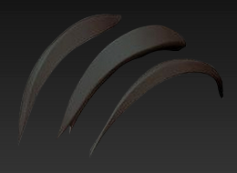 3、为了获得其他造型,复制头发模型改变尖端的位置,使它们翘起或垂下,可以继续使用“Move”笔刷刷出头发多余的分支。或者将不同的模型合并在一起之后使用DynaMesh,完成之后使用“hpolish”笔刷整理模型,效果如下图所示。