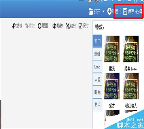 尺寸设置完成后,选择右上角的“保存与分享”。