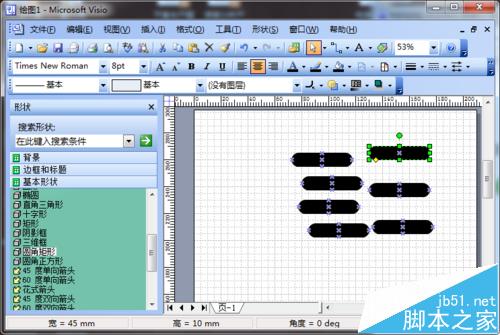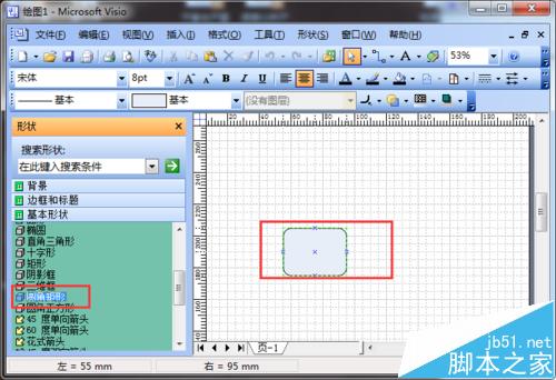 2、添加矩形:如图所示,在左侧的形状中找到圆角矩形;
