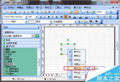 2、编辑矩形:选中矩形,单击鼠标右键,在下拉菜单中找到“格式”-“填充”;
