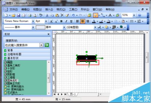 5、调整矩形大小:如图所示,单击矩形的左侧和上下测,进行调整矩形大小;