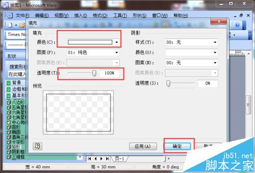 3、设置矩形:将颜色配置成“无色”,经透明度设置为“100%”;