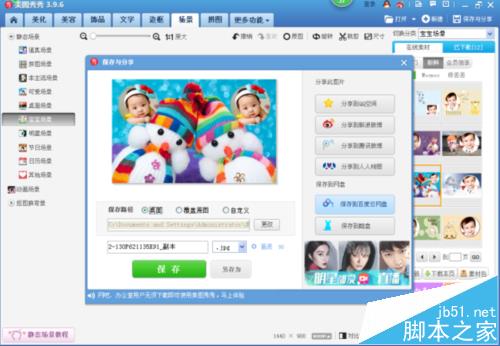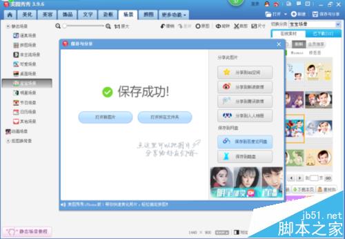 15、我们选好保存路径后,点击“保存”,弹出“保存成功”的页面,使用美图秀秀更换宝宝图片场景的制作就完成了,大家有兴趣的话,快来试试吧!