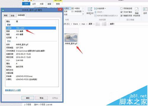 9、保存后可以到刚才保存的路径去查看图片的参数,尺寸大小变成了修改后的700x450。