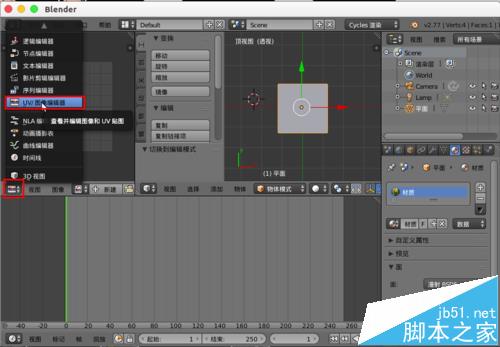 8、进入“编辑模式”,选择“平面”,通过按键“U”,弹出的菜单选择“展开”。