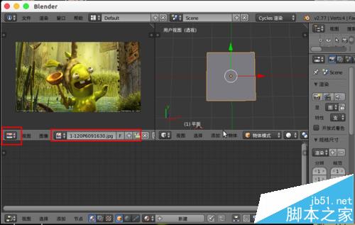 3、顶部的3d视图左边角“三角形”鼠标按住向右边拖拽一个窗口,切换为“UV/图像编辑器”窗口,并打开一张贴图图片。
