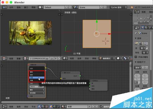 7、打开加载纹理贴图图片,“投影”中可以选择方框,平展等。
