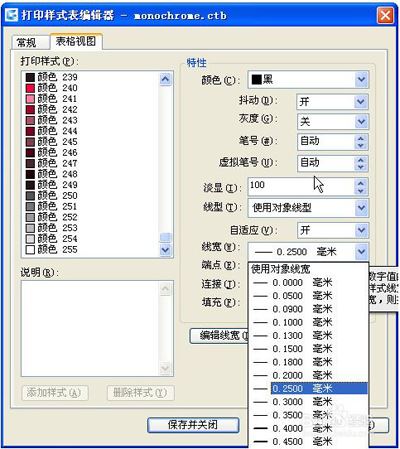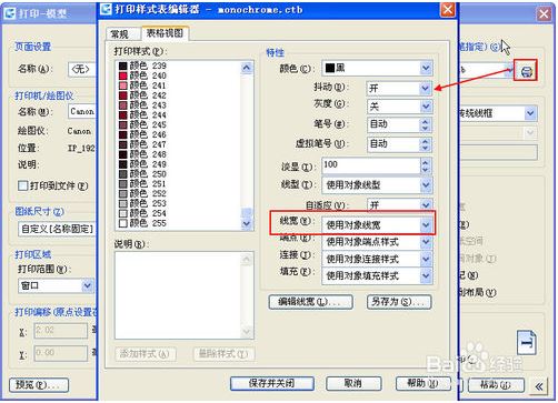 4.线宽是设置好了,但打印时还要注意输出颜色的设置,选择合适的CTB文件。