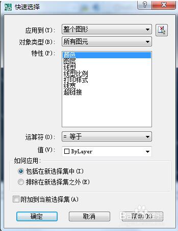 可以运用到整个图形、所有图元、文字、直线或者选择对象的特性(颜色、线型、线宽、图层等)