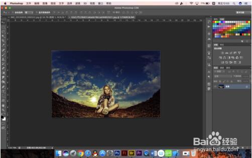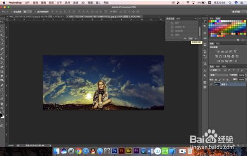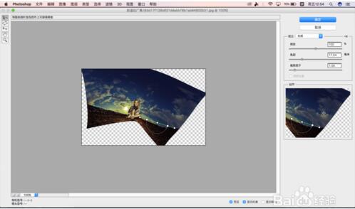 7.我们可以在动作面板中建立快照,来将处理过后的照片与之前的对比一下,可以看到这张照片并不适合拉成平面图,所以处理照片的时候应该根据图片所需要的艺术效果来决定怎么操作
