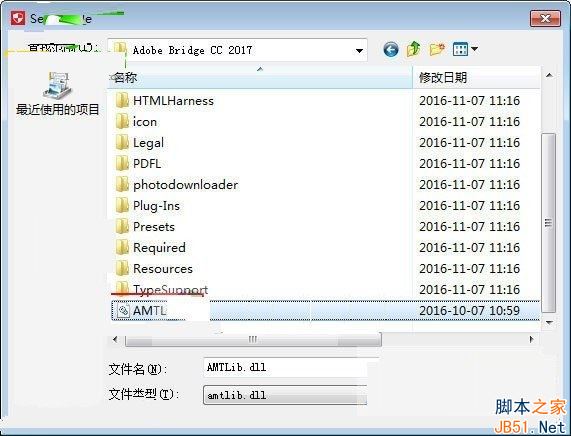 第四步:选择bridge cc 2017安装目录下的的“amtlib.dll”即可。