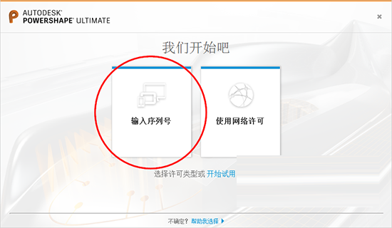 2、安装完成后,断开本地网络连接(禁用本地连接或者拔掉网线),然后运行“PowerShape 2017”桌面快捷方式,弹出窗口选择“输入序列号”