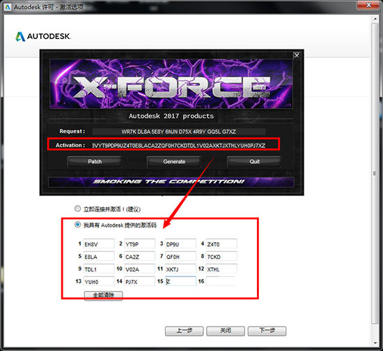 9、点击“我具有Autodesk提供的激活码”将生成的激活码复制到入内,点击NEXT