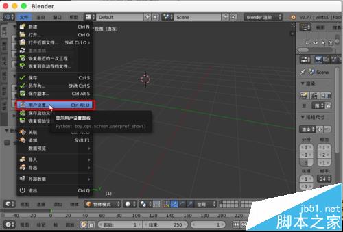 1、打开blender按“ctrl+alt+u”键,或者“文件”--“用户设置”。