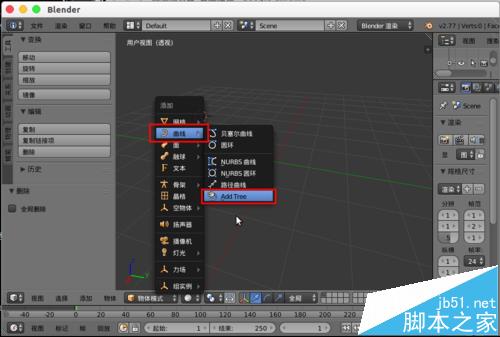 3、shift+a键,选择“曲线”--“Add Tree”。