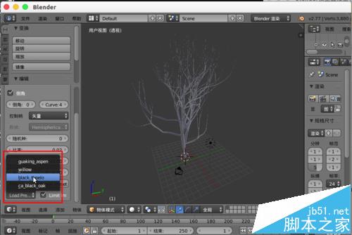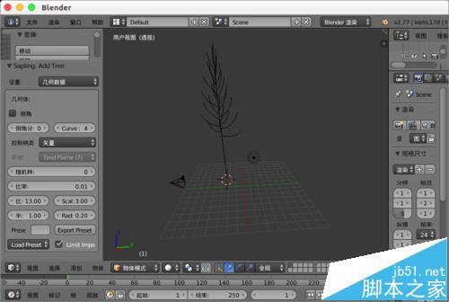 场景中需要用到树木模型,blender创建树木模型还是很方便,只需要打开内置的插件很简单就可以生成简单的树木模型。