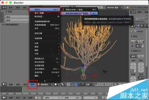7、完成后“物体”--“转换为”--“曲线/融球/曲面/文字转网络”,这样才会生成可编辑的模型。