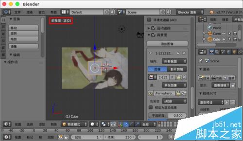 5、其实我们只需要按“数字键盘的1”切换到“前视图”,然后我们再按“数字键盘5”切换到“前视图(正交)”就显示背景图片了(左右顶的正交视图也可以)。