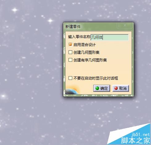 1、打开CATIA软件,新建一个PART文件,命名为,几何体;