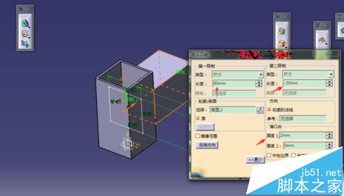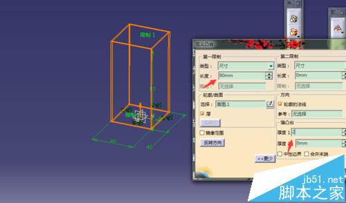 2、在零件几何体下创建一个40*40的高80厚2mm的方管;