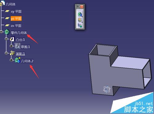 8、而且结构树叶发生变化了,原本是几何体2与零件几何体是一个级别,现在几何体2变为零件几何体的一部分了。