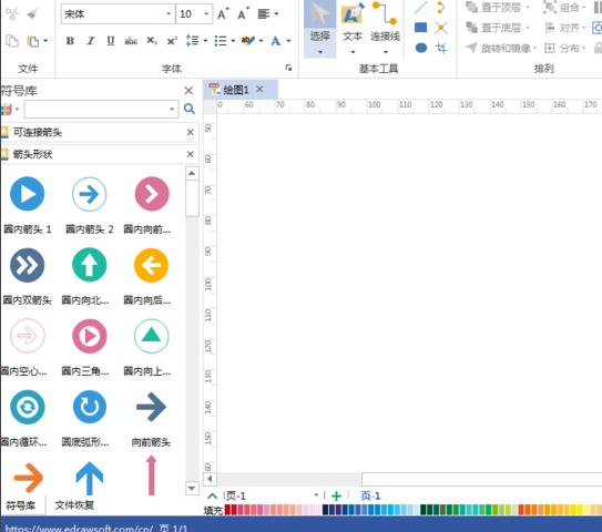 3、画布创建完毕,这时会在左侧看到“可连接箭头”和“箭头形状”,如下图所示:
