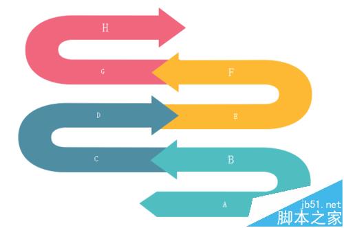 5、修改“信息图箭头“上默认的内容,改为字母A-H,如下图所示: