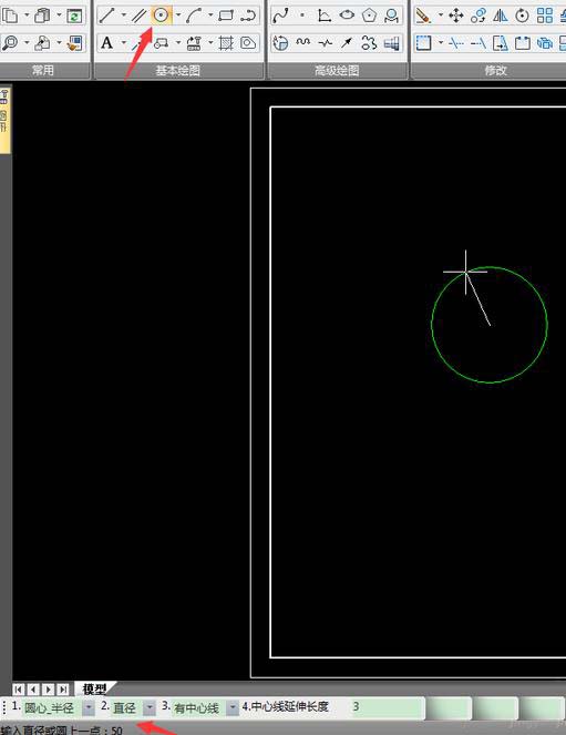 4、绘制一个直径50的圆;