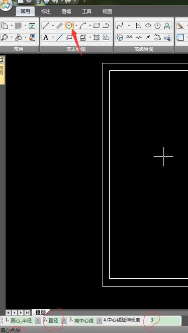 4、选择圆形工具绘制一个直径50的圆;